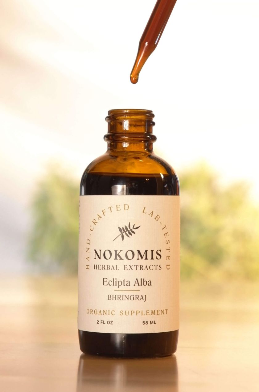 Nokomis extracts are often more potent than other extracts made with industrially-farmed Bhringraj. Our dried Bhringraj extract is also more potent than fresh root extracts since fresh roots are about 70% water. Higher potency means more value and more benefit with each dropperful.