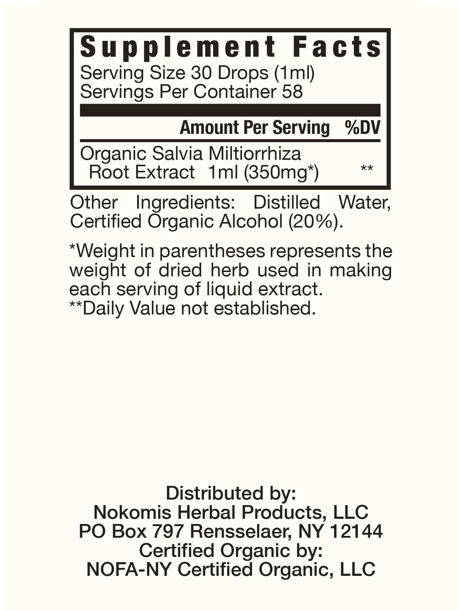 Organic Sustainably Grown Dried Salvia Miltiorrhiza Root, Distilled Water, Organic Alcohol (20-25%)
